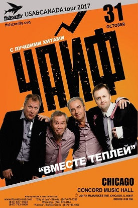Завершает круг октябрьских развлечений и проведения досуга группа “ЧАЙФ” — советская и российская рок-группа, образованная Владимиром Шахриным, Владимиром Бегуновым и Олегом Решетниковым в 1985 году. История группы начинается ещё с 1983 года, когда Владимир Шахрин, Олег Решетников и Вадим Кукушкин начали репетиции в Свердловске. За тридцать с небольшим лет в разных городах и странах появилось много людей, которым нужен ЧАЙФ и которые необходимы ЧАЙФу. Это вместе с ними группе теплей, и им посвящён новый тур. Дата: 31 октября Время: 8:00 p.m. Адрес: Concord Music Hall